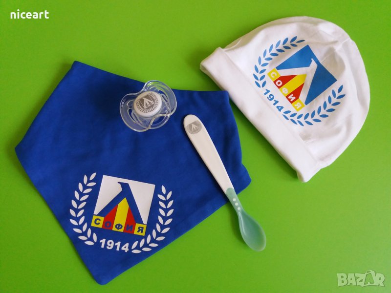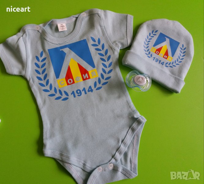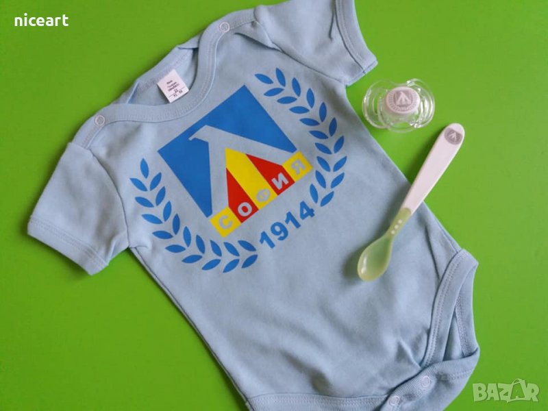 При нас може да поръчате бебешки бодита с емблема на Левски Сф,както и аксесоари с гравирана емблема.Материя памук.