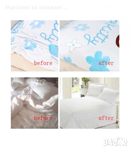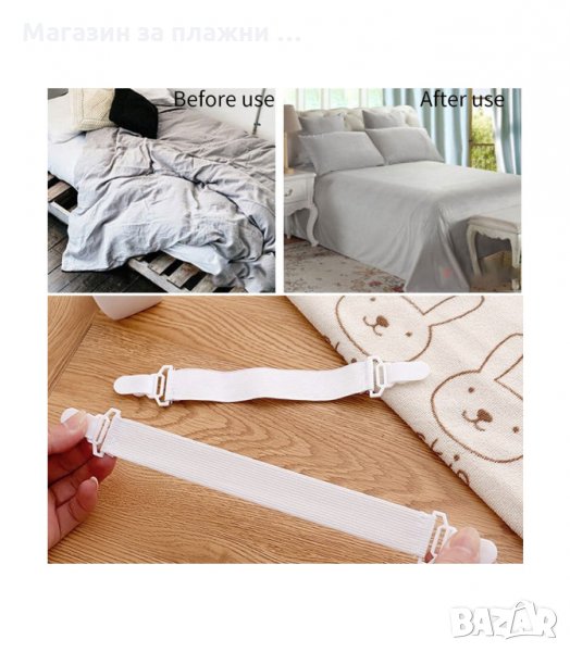 Щипките са подходящи за изпъване на чаршафи и калъфи за маса за гладене. Захващат се за всяка страна на всеки ъгъл на чаршаф за легло, покривало или протектор за легло, одеало, подложки за матрак, покривки, калъф за диван или за маса за гладене.
