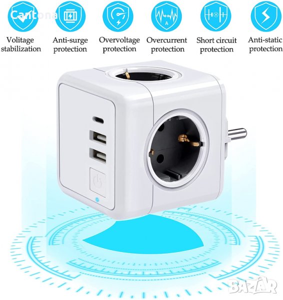 - 7 в 1 мултифункционални гнезда: Power Magic Cube USB има 4 гнезда за захранване, 2 USB порта и 1 порт тип C, във формата на куб може да зарежда до 7 електронни устройства едновременно, например компютър, принтер, телевизор , електрически четки за зъби, таблети и мобилен телефон.