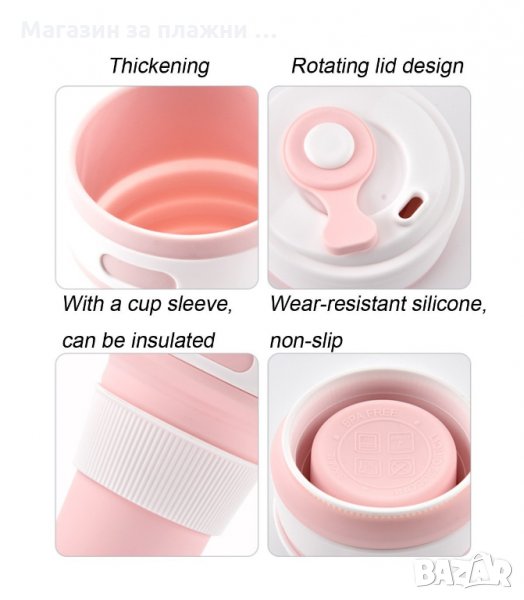Представяме ви тази страхотна чаша за кафе от силикон! Чашата е уникална, защото е сгъваема. Изработена е от висококачествен силикон и пластмаса без BPA, съвместими с хранителни продукти и е напълно безвредна и подходяща за цялото семейство. Чашата може да се използва многократно, има достатъчно голям обем и е напълно защитена от протичане и разливане.
