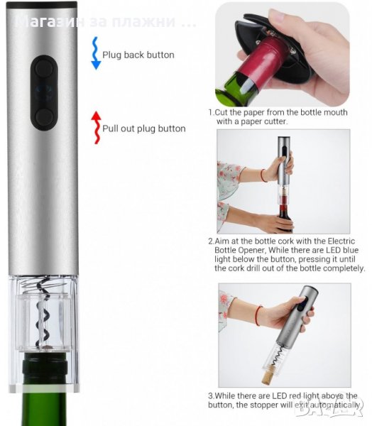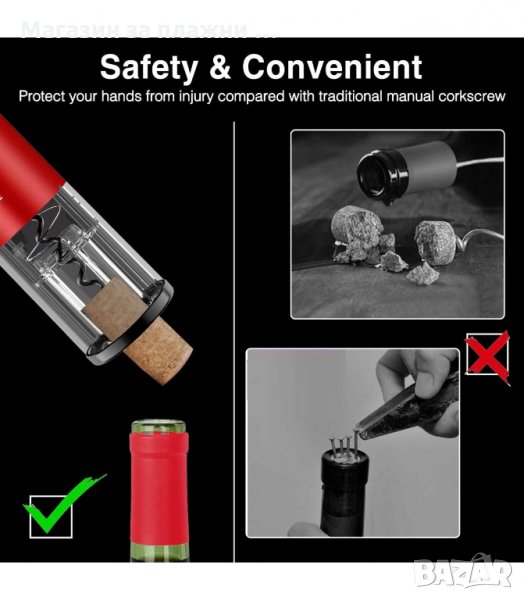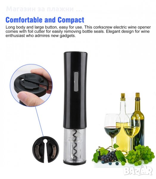 Електрически тирбушон за отваряне на бутилки вино - премахва тапата за секунди