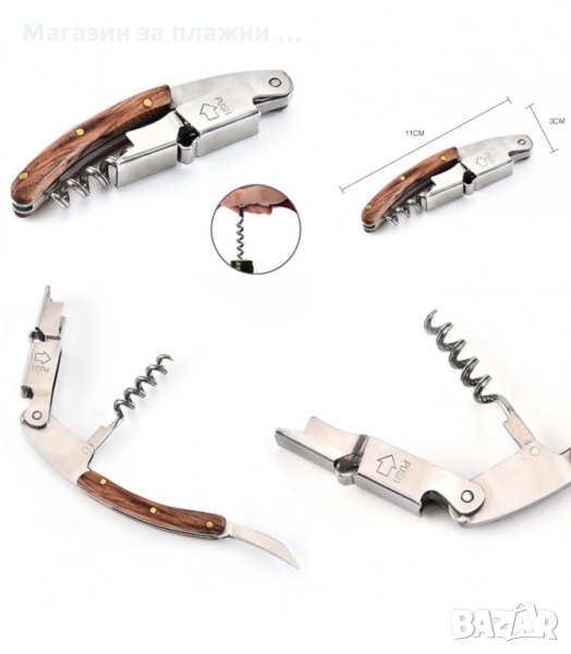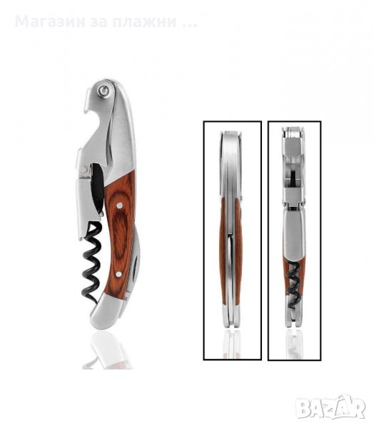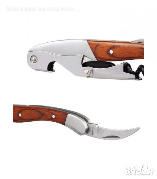 Тирбушон с двоен лост и дървена дръжка