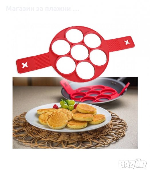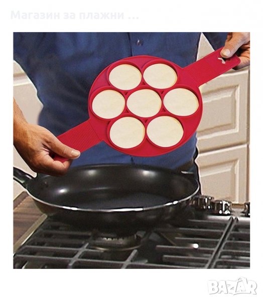 Силиконовата форма позволява по лесен начин да приготвите 7 броя палачинки или яйца само с едно пържене. Формата се обръща лесно, защото след като се запържи леко сместа остава в специалните отвори на формата, а Вие можете преспокойно да обърнете и изпържите от другата страна палачинките или яйцата.