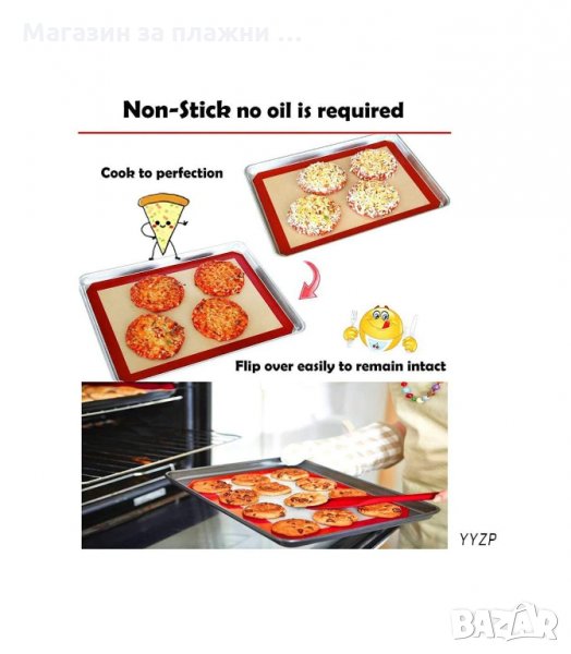 Размери и комплектовка - Продукта се състои от 1 брой правоъгълна силиконова подложка за печене с размери 40х30см.