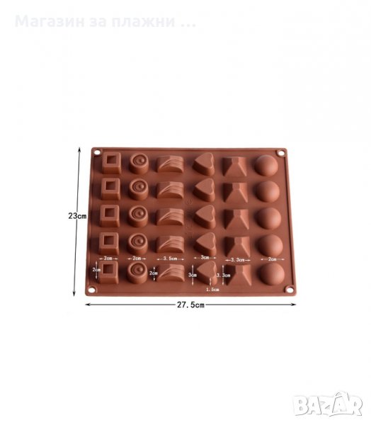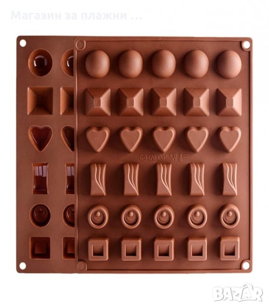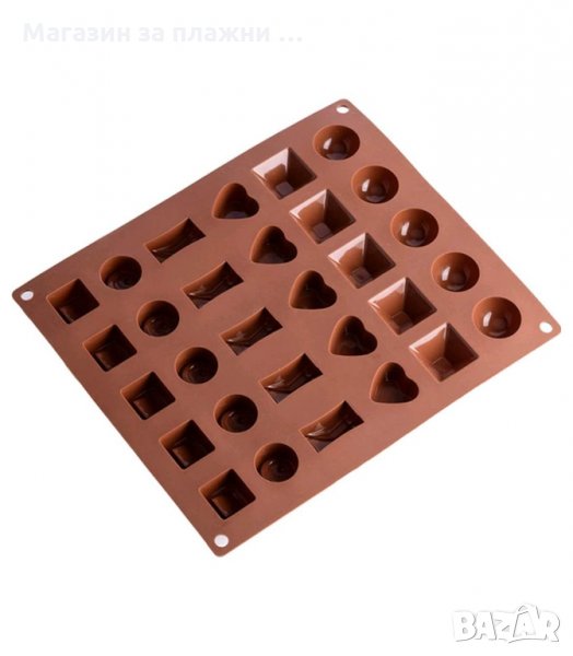 Силиконова форма в кафяв цвят за приготвяне на шоколадови бонбони. Не е необходима мазнина, тъй като е с незалепващо покритие.