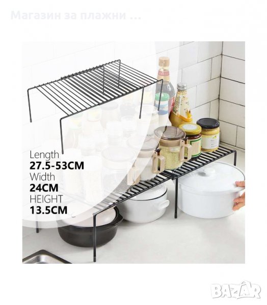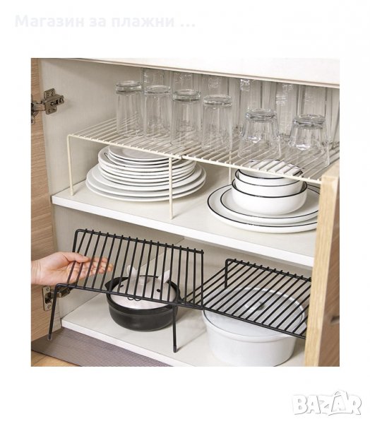 Осигурява допълнително място за съхранение във Вашите шкафове. Идеален за подреждане на чинии, купи и чаши.