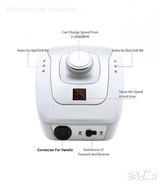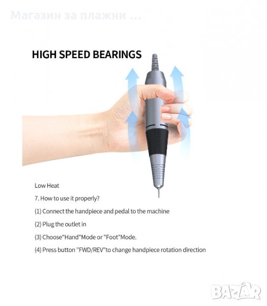 Комплект за професионален маникюр и педикюр - Електрическа пила с накрайници и шлифовъчни пили