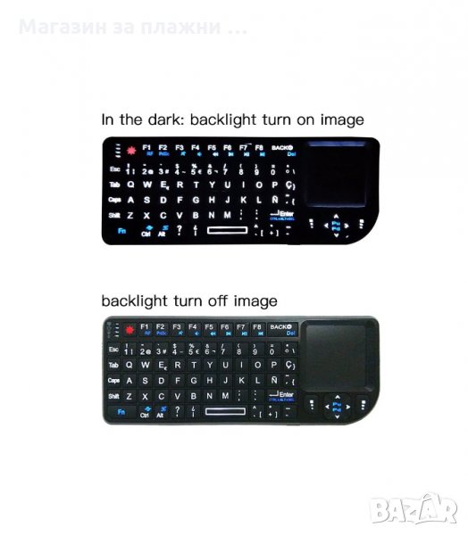 Мини безжична клавиатура за компютър, лаптоп или Smart TV Той е малък, но тя е оборудвана с всички ключове, които сте включили клавиатура в пълен размер. Мини клавиатура е съвместим със следните операционни системи Windows 2000, Windows XP, Windows Vista, Windows 7, Windows 8, Linux, Android и може да се използва с Персонални компютри, лаптопи, Smart TV, HTPC и Android TV. Батерията се зарежда чрез USB кабел за зареждане 4 часа.