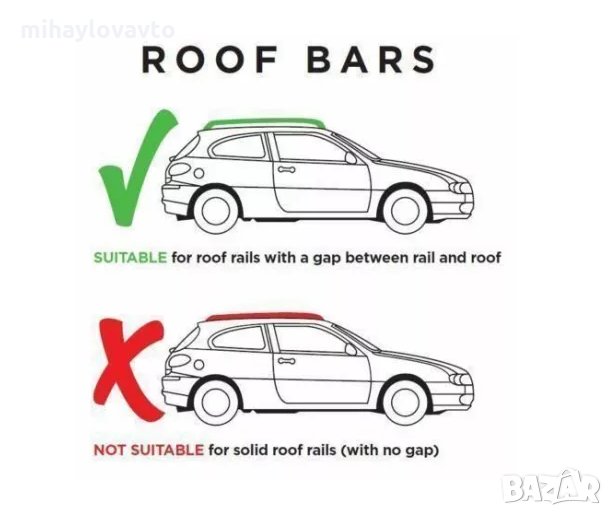 Подходящ за превозни средства с релси на покрива и максимална ширина на монтаж от 104см.