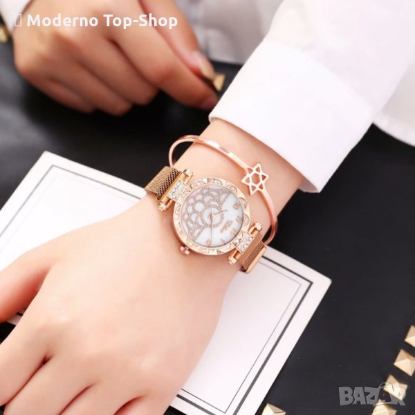 Дамски часовник с кристали и магнитна верижка. → Обява 34151934
