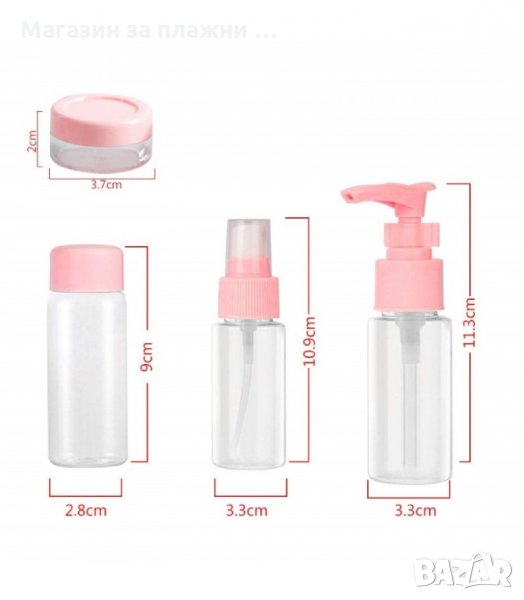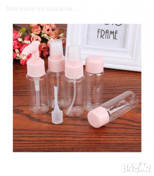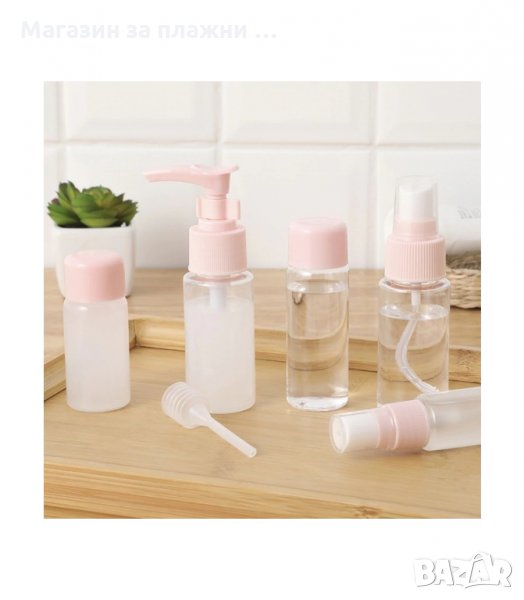 Козметичен комплект, който ще направи пътуването ви по-приятно, защото ще ви улесни страхотно при приготвянето на багажа! Комплектът съдържа 5 броя малки шишенца 50 мл. и малка кутийка, в които да отсипете от най-необходимите козметични продукти - шампоан, балсам, лосион за тяло, крем за лице и др.