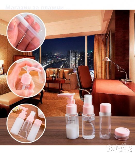 Комплект Несесер с 6 бр. празни шишенца за козметика за пътуване