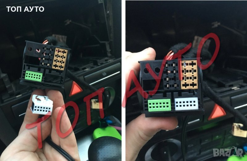 Устройството може да се добави към фабричната аудиосистема в колата. Модулът представлява Bluetooth, който се свързва към фабричната 12пинова букса на радиото и се захранва от + през контакт и маса!