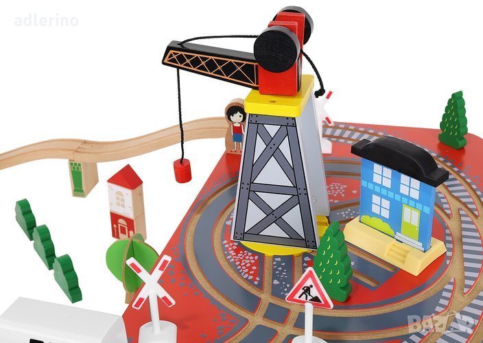 дете обича влакове, релси и коли? Дървеният влак с релси е перфектен