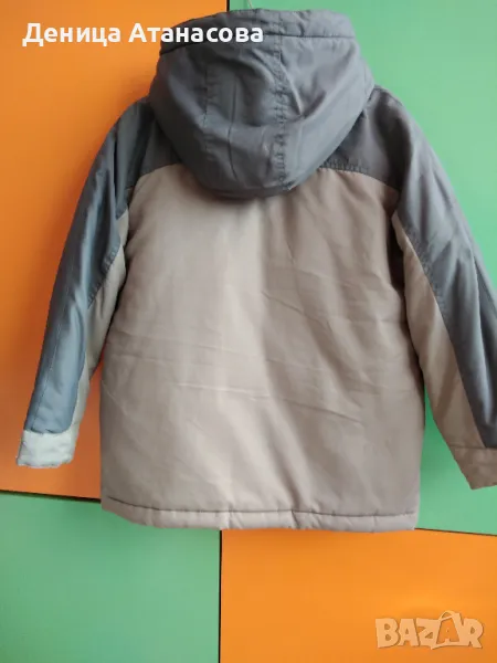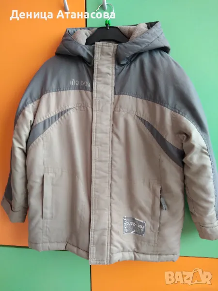 7) Бежово зимно яке Ino boy с несваляща качулка поларено отвътре, ципчетата му са много интересни като гаечен ключ, пише размер 116, но е уголемено и отговаря на 122, дължина 55 см, ръкав от мишницата 32 см - 15 лв.