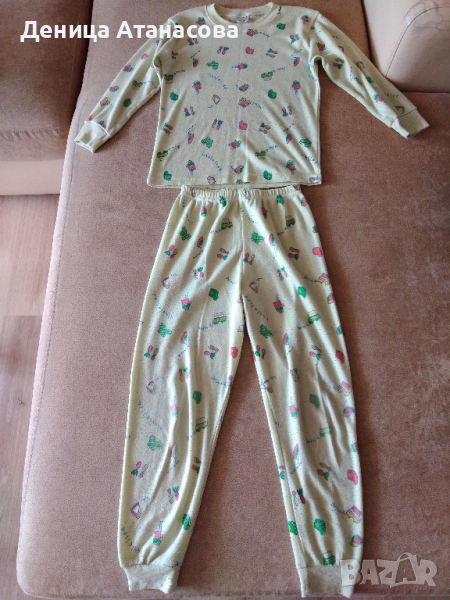 3) Жълта пижама плътна с нормални следи от употреба, има заваляни топченца, дължина на долнището 69 см - 5 лв.
