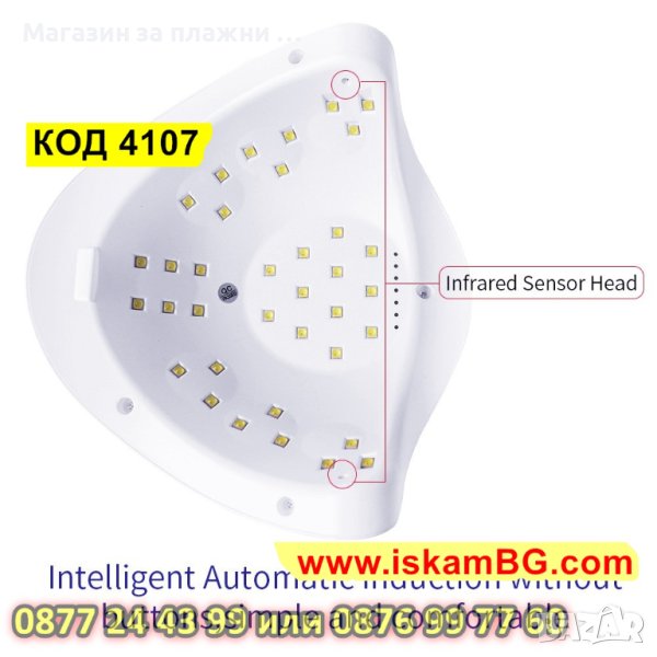Дълготрайните светодиоди, които са равномерно разпределени вътре, ще помогнат да се изпече равномерно гел лакът и няма да навредят на кожата. Лампата има доиди с двойна светлина (Обхват на осветление – 365 nm + 405 nm).