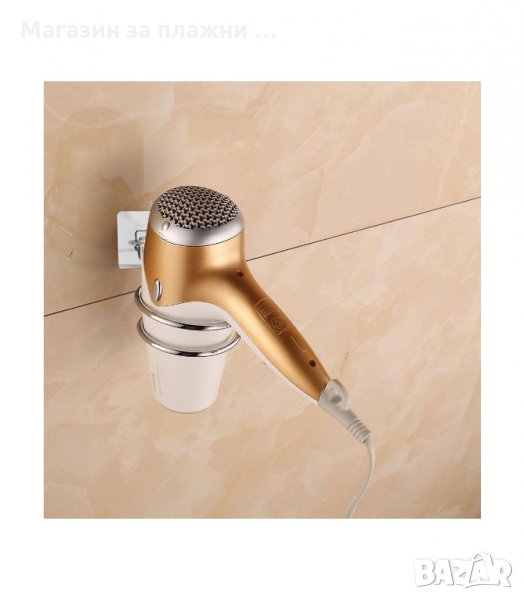 Поставката е изключително полезен аксесоар, в който можеш да поставиш дори работещ сешоар, а освен това за по-голям комфорт има и допълнителен отвор за четка за коса. Монтиране чрез самозалепващ стикер, без да е нужно да пробивате стената; Стойката за сешоар има кукичка за поставяне на кабела, когато не го ползвате;