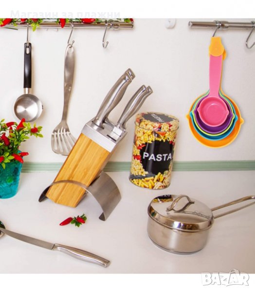 Измерването на брашно, подправки и какво ли още не никога не е било толкова лесно. Тези мерителни лъжици, които са цели 5 броя, са невероятно удобни и приятни на допир. Те са направени от здрава пластмаса и всяка от тях си има две обозначения - в част от чаша и в милилитри, а освен това всяка лъжичка има и два улея от двете си страни за по-лесно отмерване на течности. Така ще можете да сте възможно най-прецизни в отмерването на брашно, захар, сол, олио, вода и други продукти, с помощта на които ще приготвите вкусни ястия или сладкиши.