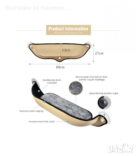Това котешко легло може да се закачи на високи прозорци във вашия апартамент или в градината, където котката ще се чувства идеално, тъй като тези пухкави домашни любимци са игриви животни и обичат да се катерят и скачат. Обичат и да си подремват сладко на топло и слънчево място, от което могат да наблюдават всичко наоколо.