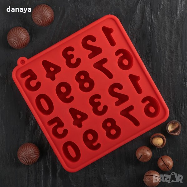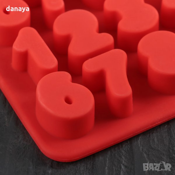 Силиконова форма числа за шоколадови бонбони, карамелени бонбонки или лед. Тавичката съдържа 20 гнезда с форма на цифрите от 0 до 9 по 2 пъти. Формата е изработена от силикон, издържа на температура от -40 до 220 градуса. Идеална е за отливка на шоколад и карамел. Може да се използва и като форма за лед. Чудесна за декорация и украса на торти и сладкиши.