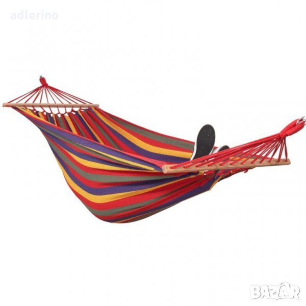 Двоен хамак, 280х150 см, шарен, 190 кг, градински двоен хамак, с летви, бразилски хамак
