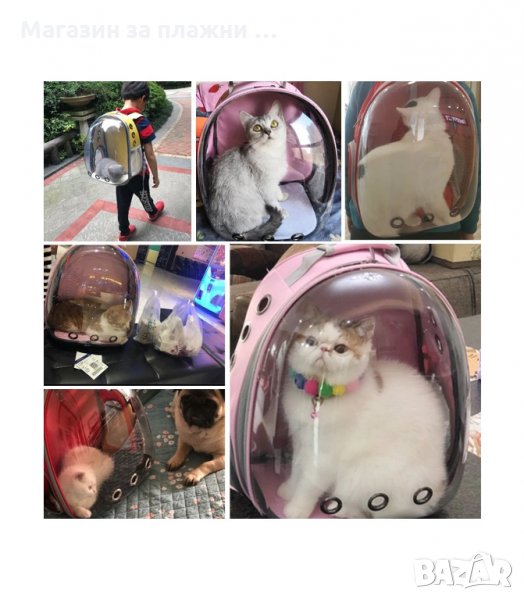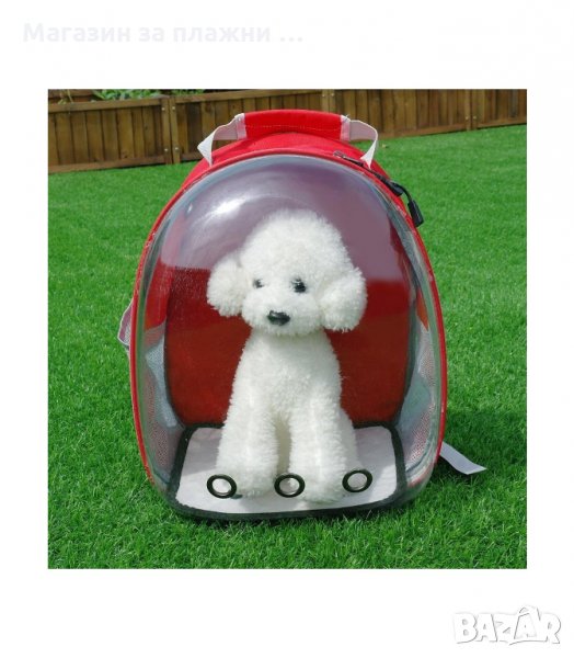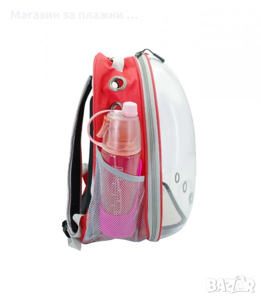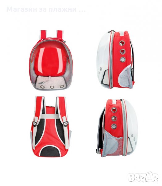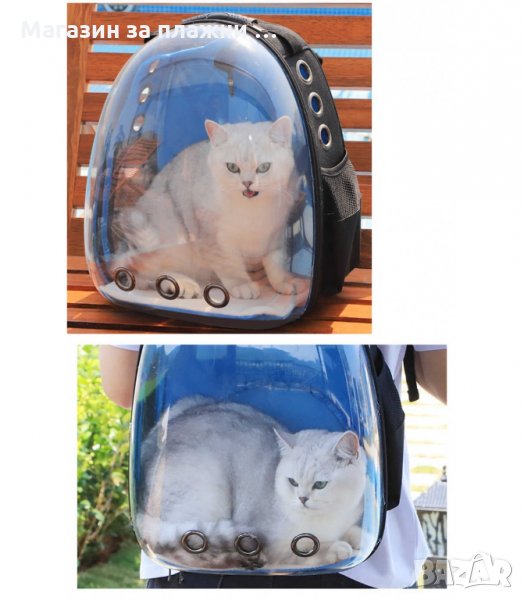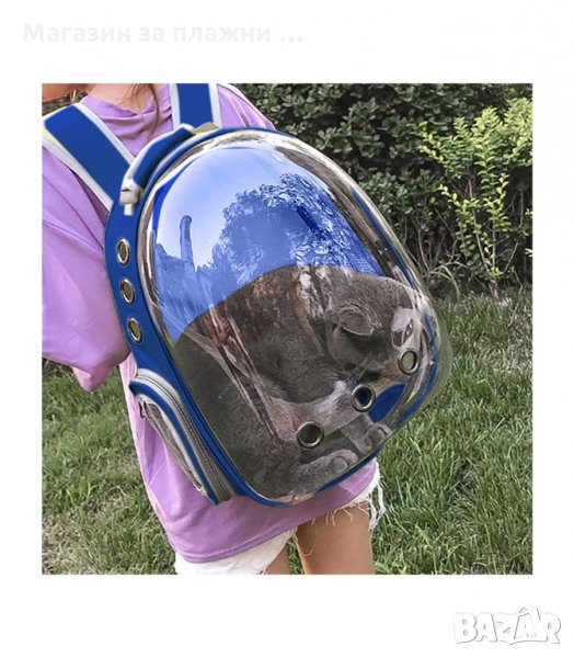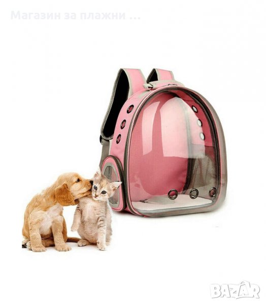 Раница чанта за пренасяне и разходка на котка или куче с прозрачна капсула за наблюдение и отвори за въздух , изработена от PVC и акрил раницата е водонепропусклива и не се цапа лесно, с ципове за лесно отваряне/затваряне. Страхотен начин да разхождате безопасно вашите по-малки домашни любимци като котки, кучете, зайци и други.