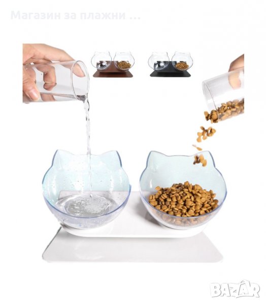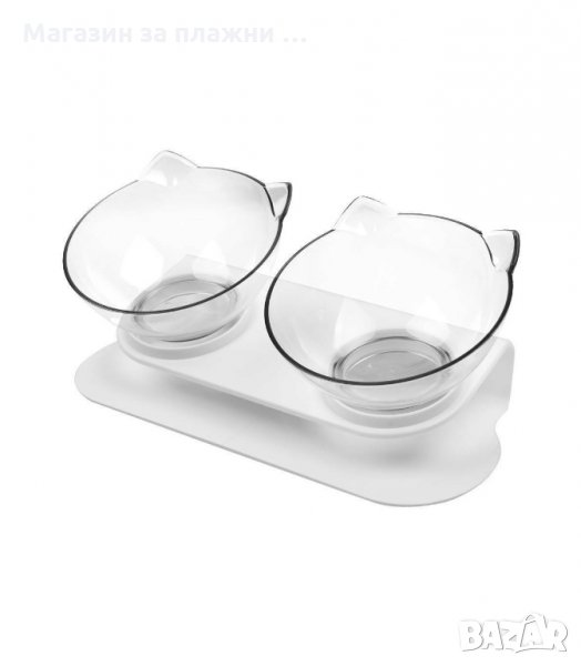 Удобен комплект от две купички с поставка, която не позволява разливането върху подовите настилки в дома.