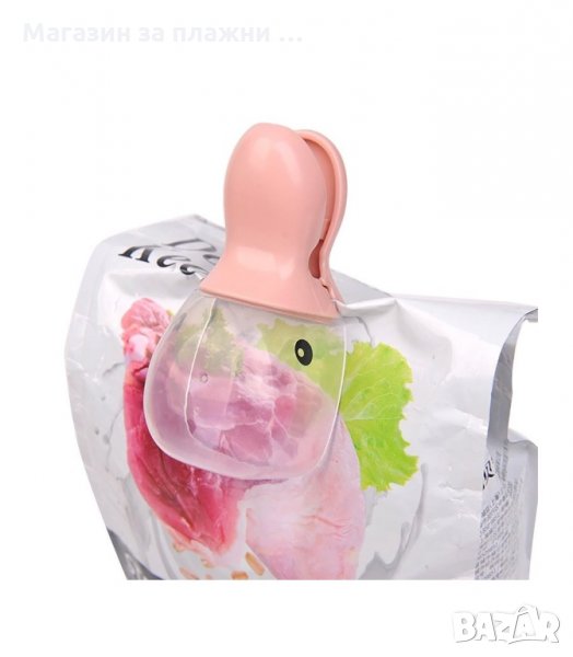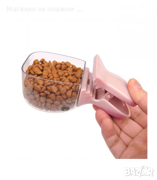 Функционална лъжица за дозиране на котешка и кучешка храна със защипващ механизъм за затваряне на плика