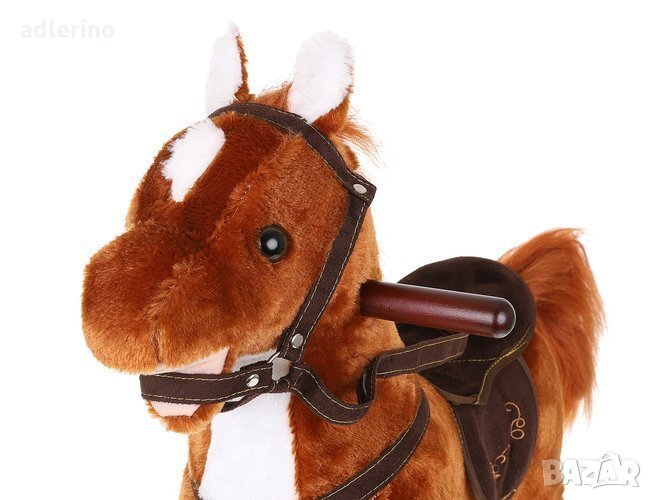 Опашката е изработена от мек и приятен на допир плюш, дръжките и стълбовете му са от лакирано дърво.