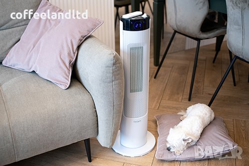 Устройството е оборудвано с дистанционно управление. Колонната форма на уреда спестява