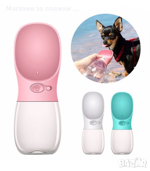 Преносима бутилка за вода за кучета, 350мл. в розов и жълт цвят