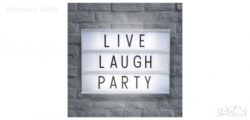 Магнитен светещ LED панел с букви, с бяла LED светлина и 100 букви и символи, за да създадете свое собствено съобщение. Може да се монтира на стена или върху равна повърхност.