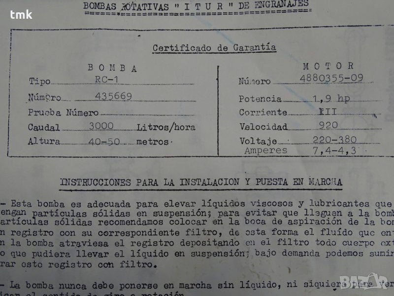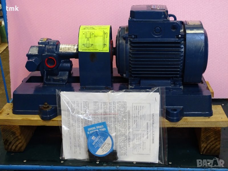 Предлагаме нов хидравличен агрегат, състоящ се от хидравлична помпа за трансфер на масло и ел.двигател, произвоство на испанската компания Bombass ITUR. Агрегатът е със следните параметри: