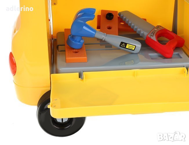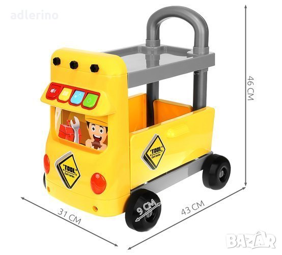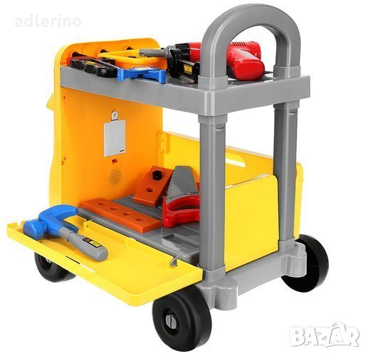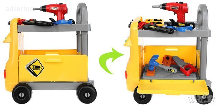 количка, в която детето ще носи своите играчки. Комплектът включва: чук,