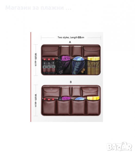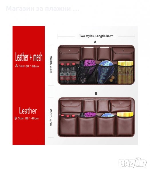 Изработен от Висококачествена еко кожа. Екологичен, здрав и устойчив. Лесен за инсталиране с универсален размер и голям капацитет на съхраниение. Разполага с 8 различни джоба.