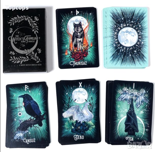 - 24 оракул карти с руни - Witch's Familiar Runic Oracle, размер 8,8х5,8см,