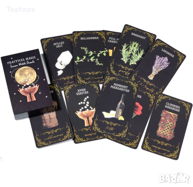 - 46 оракул карти Practical Magic Inner Witch Deck, с pdf книжка на наглийски език. Размерът им е 10,5см х 6,3см, колодата е на Joseph Benitez.