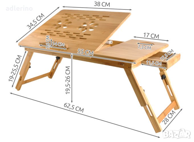 масата, както и ъгълът на плота на масата под лаптопа са регулируеми (4