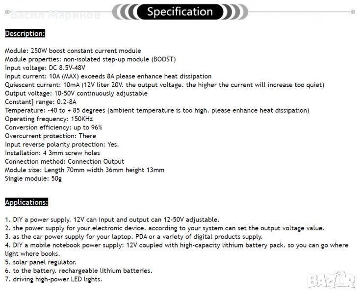 Продавам Dc-Dc повишаващ преобразувател Boost Step-Up 250W 8A, снимка 1 - Друга електроника - 34169230 Продавам Dc-Dc повишаващ преобразувател Boost Step-Up 250W 8A, снимка 2 - Друга електроника - 34169230 Продавам Dc-Dc повишаващ преобразувател Boost Step-Up 250W 8A, снимка 3 - Друга електроника - 34169230 Продавам Dc-Dc повишаващ преобразувател Boost Step-Up 250W 8A, снимка 4 - Друга електроника - 34169230 1/4