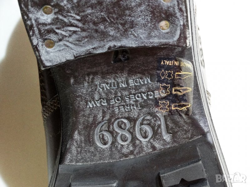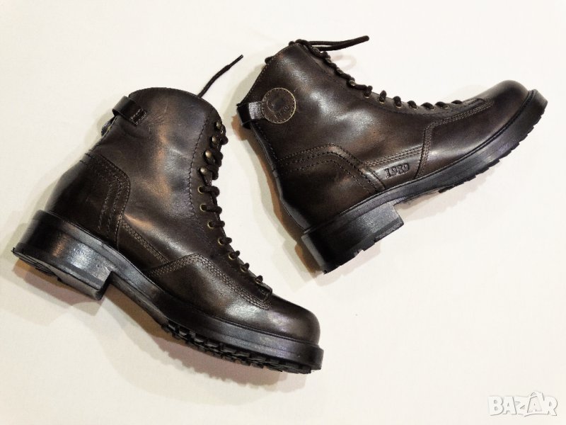 Нови с кутия, прахова торчбичка, сертификат, естествена кожа, цвят тъмно кафяв, юбилейни - 30години от създаване на бранда, лимитирана серия, производство Италия, закупени от официалния сайт за 789лв / тези боти нямат намаления /, измерена дължина на стелката 24см. Моля не предлагайте суми, предлагам ги с 240лв /1/3 от цената по-малко!