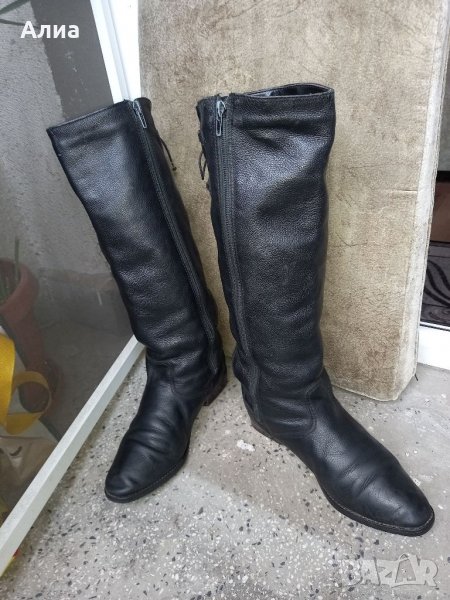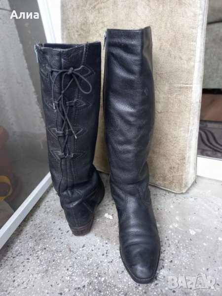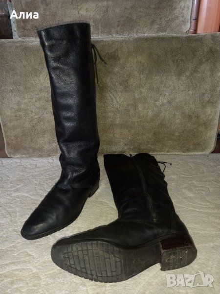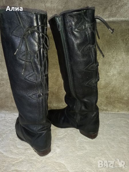 Черни ботуши, обща височина 45 см. С декоратимни връзки отзад. Естествена кожа. Номер 39.