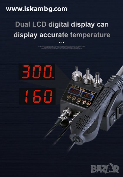 ПРОФЕСИОНАЛНА!!! СТАНЦИЯ ЗА ЗАПОЯВАНЕ С ГОРЕЩ ВЪЗДУХ LCD дисплей и поялник в комплекта