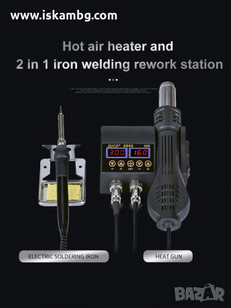 Професионална!!! Станция за горещ въздух и поялник за запояване LCD дисплей - КОД 8858 → Обява 34171526