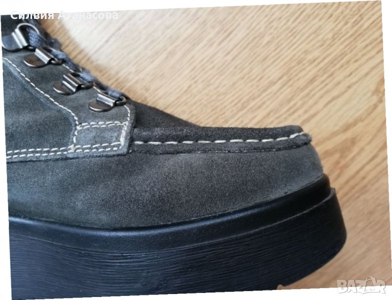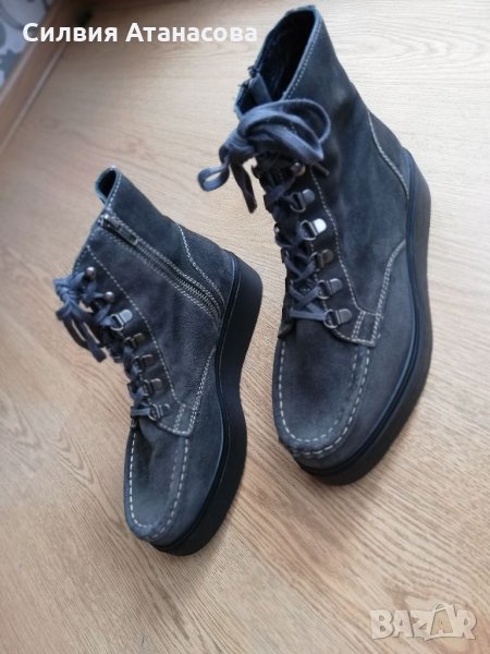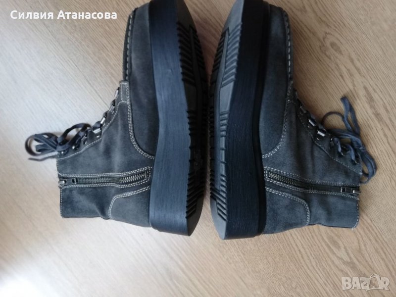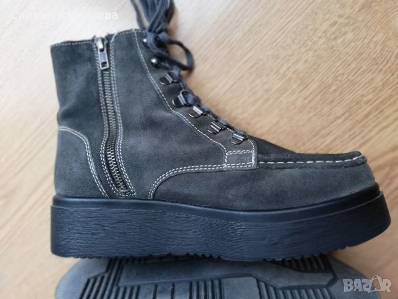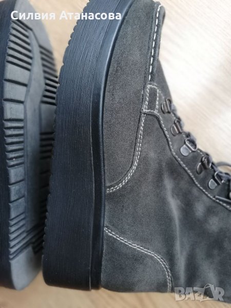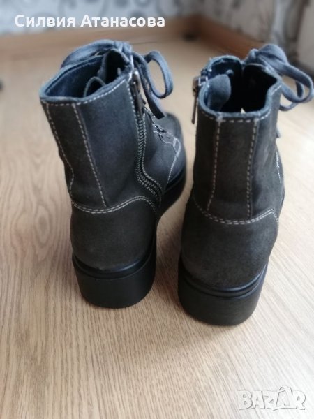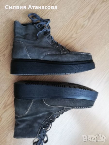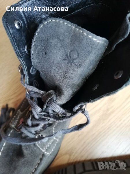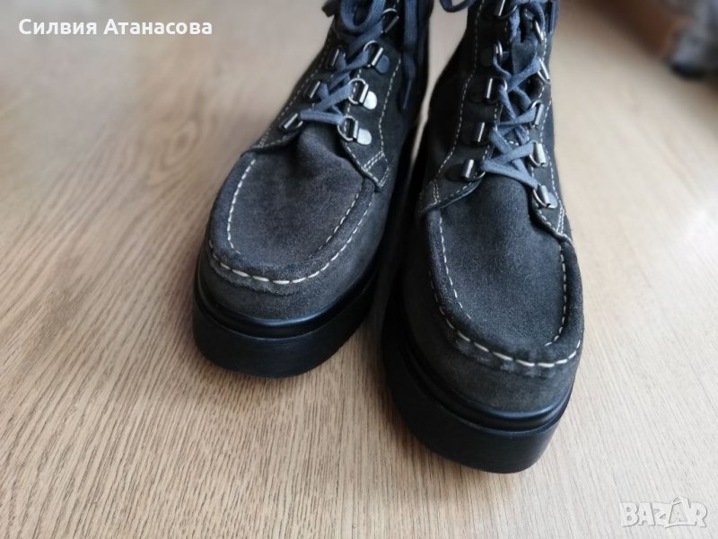 Боти Beneton пролетно-есенни, тъмно сив естествен велур, висока подметка, размер 40, запазени, без забележки.