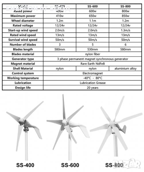 НОВ ветрогенератор 24v 800w 6 витла вятърна турбина перка зелена енерг