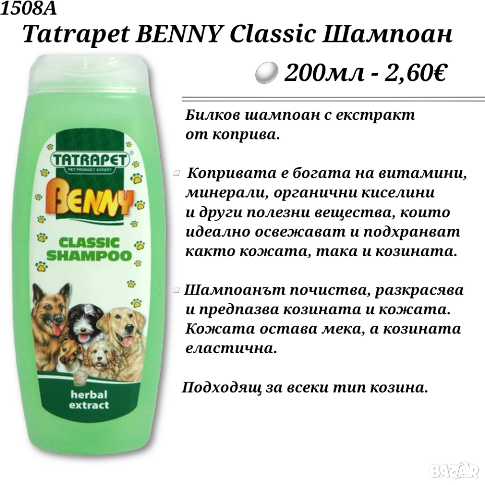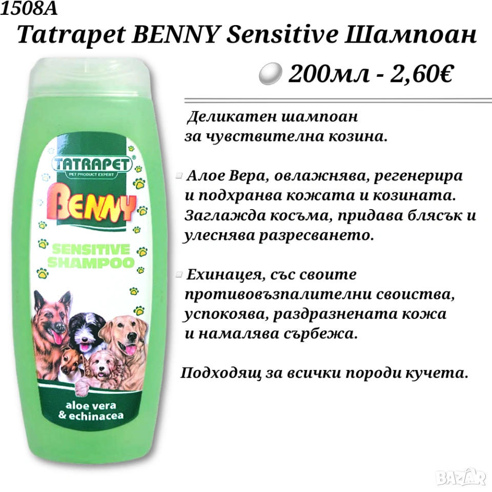 Tatrapet BENNY Шампоани за кучета. Билков шампоан. Шампоан за дългокосмести кучета.Sensitive Шампоан