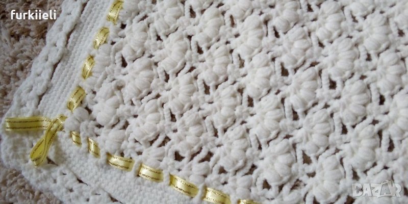 Ръчно плетено детско одеало 1.10/1.10 м.Ново меко и толещо изработено с много труд.Изпращам по спиди или еконт .Може и лично предаване.