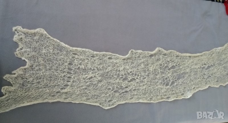 5. Бял шал, ръчно плетен - 140 см х 30 см