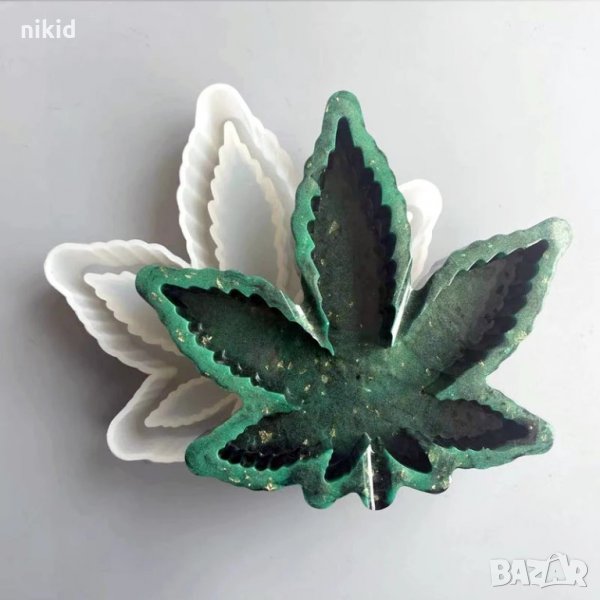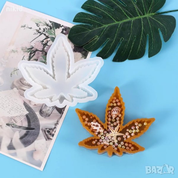грамадно есенно Maple Мейпъл канабис листо силиконов молд форма калъп пепелник гипс смола и др → Обява 34178236